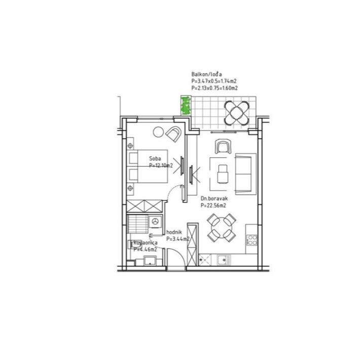 – JEDNOSOBAN STAN 48 m²