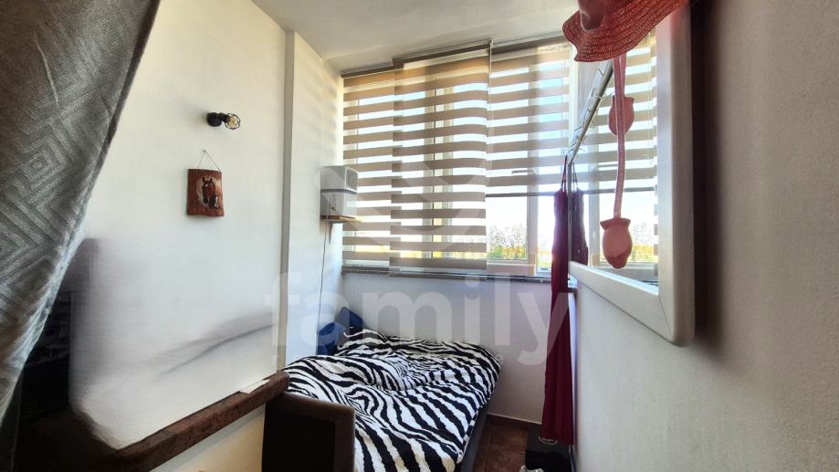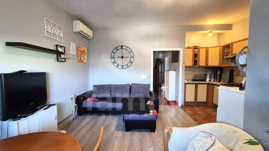 Upravo u naselju Peroj je smješten stan s pogledom na more i dio Brijunskog arhipelaga. Stan se nalazi u stambenoj zgradi na prvom katu i površine je 42 m2. Sastoji se od hodnika, kupaonice sa tuš kabinom, kuhinje koja je povezana sa dnevnim boravkom i otvorenog je tipa. Dnevni poravak je osunčan i povezan sa loggiom koju su vlasnici zatvorili u bijelu Pvc stolariju. Stan je vrlo osvjetljen i prozračan.Spavaću soba ima postavljen laminat s na podovima sa izlazom na manju šarmantu terasu koja ima pogled na more i zelenilo. Dio stolarije u stanu je je zamjenjea u bijelu Pvc stolariju sa duplim staklima, a dio je drvena. Nekretnina posijeduje protuprovalna ulazna vrata. Stan je obzirom na kvadraturu dobro i osmišljeno uređen. U krugu zgrade je dostupan besplatan parking.