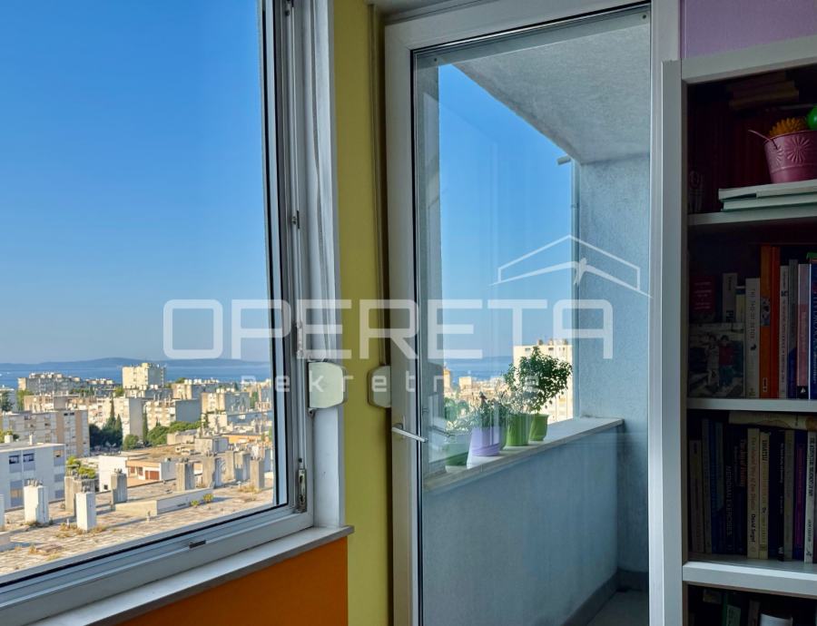 U mirnom i izvrsno povezanom dijelu Splita, na granici kvartova Plokite i Sućidar, smješten je svijetao i funkcionalan jednosoban stan površine 39,76 m². Nalazi se na sedmom katu održavane stambene zgrade s liftom, što mu osigurava privatnost, mir i otvoren panoramski pogled na more i otoke.