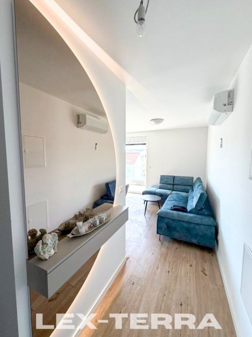 Stan je klimatiziran, opremljen podnim grijanjem, a sigurnost osiguravaju protuprovalna vrata i videoportafon.