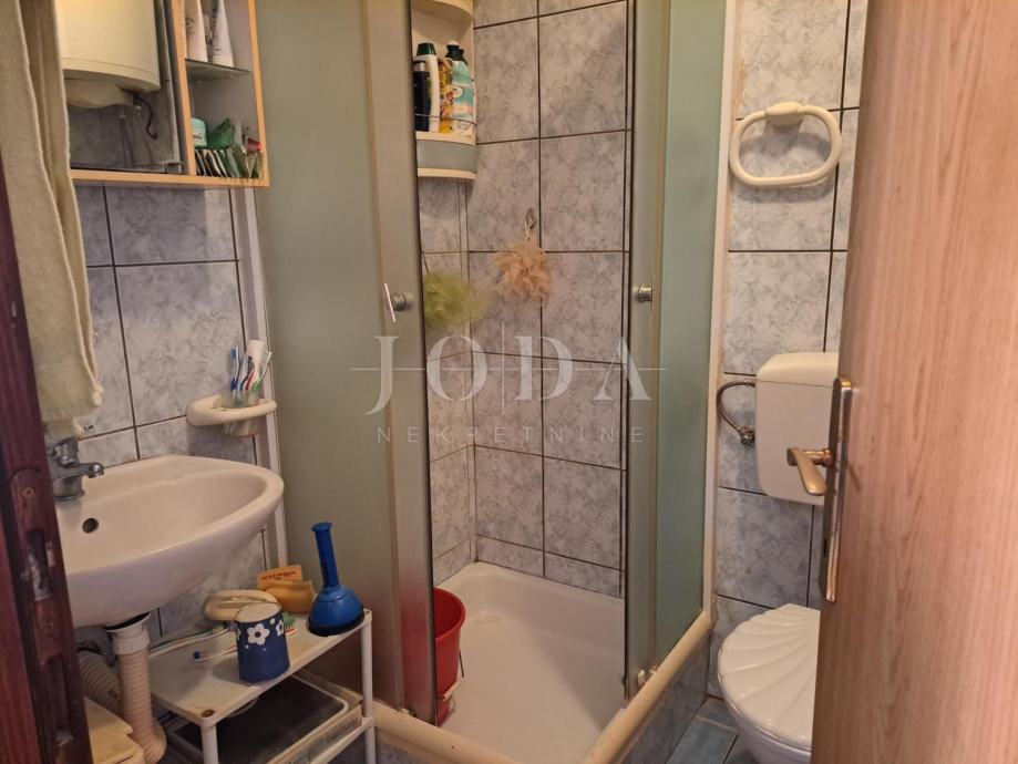 Stan površine 38,50 m2 nalazi se na 1.katu stambene zgrade sa 6 stanova. Sastoji se od dnevnog boravka s kuhinjom i blagovaonicom, jedne spavaće sobe, kupaonice, natkrivene terase površine 7,80 m2, te neuređenog pomoćnog prostora površine 44,60 m2 u potkrovlju, pripada mu parkirno mjesto i okućnica u površini od 30 m2. Grijanje je putem klima uređaja i peći na drva. Prodaje se namješten.