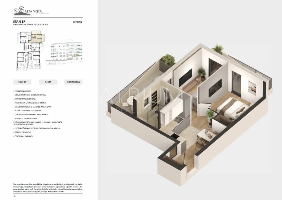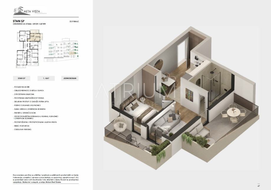 Gotovo 21 m² vanjskog prostora pruža dodatnu vrijednost i komfor, što je iznimno atraktivno u kategoriji jednosobnih stanova.