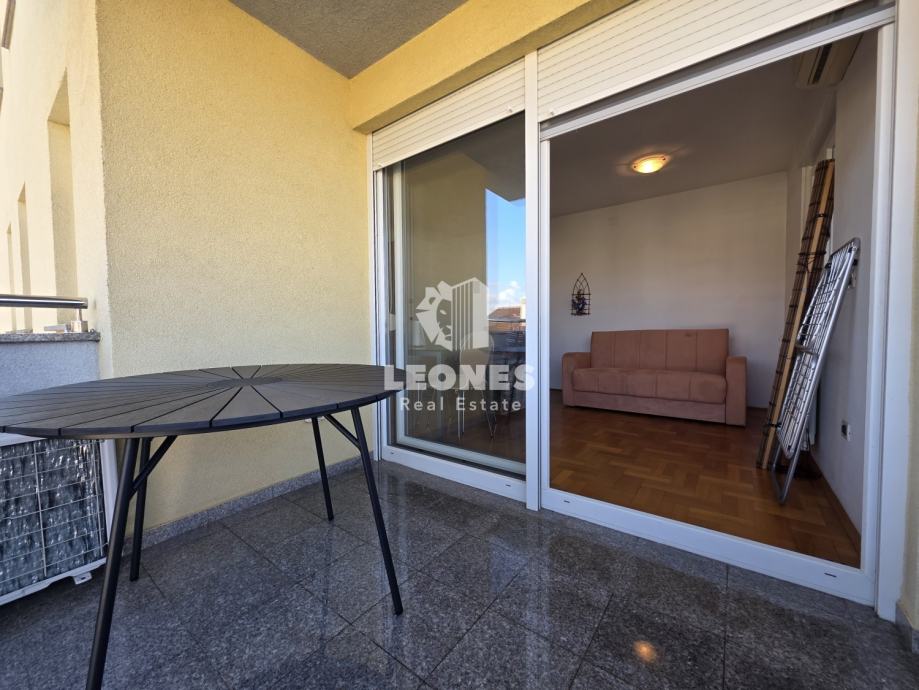 Iznajmljuje se jednosoban stan u Umagu na duži period. Stan se sastoji od bnevnog boravka i kuhinje, terase, kupatila i jedne spavaće sobe te je kompletno namješten (izuzez televizora). Grijanje je na radijatore na struju.