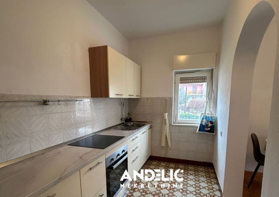 Stan se nalazi na prvom katu kuće, sastoji se od jedne spavaće sobe od 18 M2, kuhinje, blagovaonice i dnevnog boravka, kupaonice, wc-a, predsoblja, ukupne površine od 44 M2.
