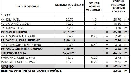 Stan ima ukupnu stambenu površinu od 52,05 m2