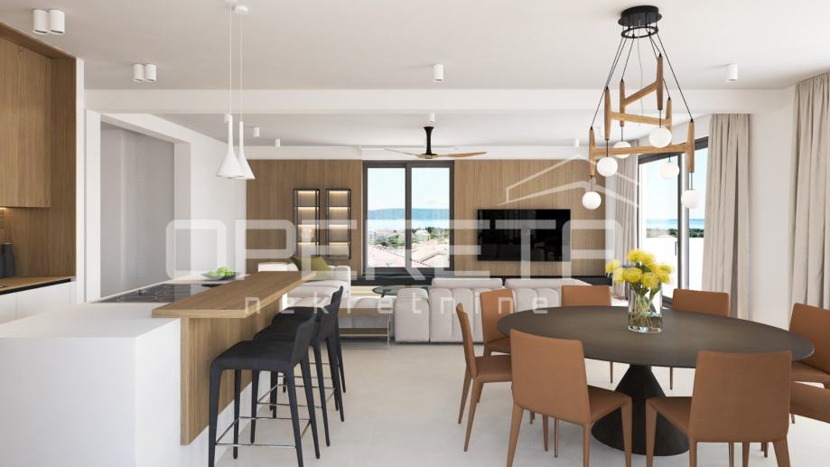 Glavni dio stana čini prostrani dnevni boravak s integriranom blagovaonicom i kuhinjom, koji postaje središte obiteljskog života i druženja.