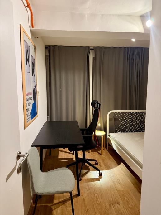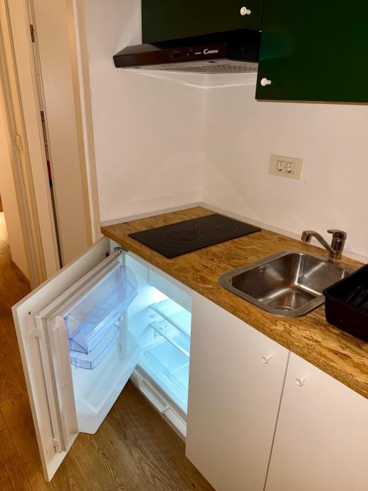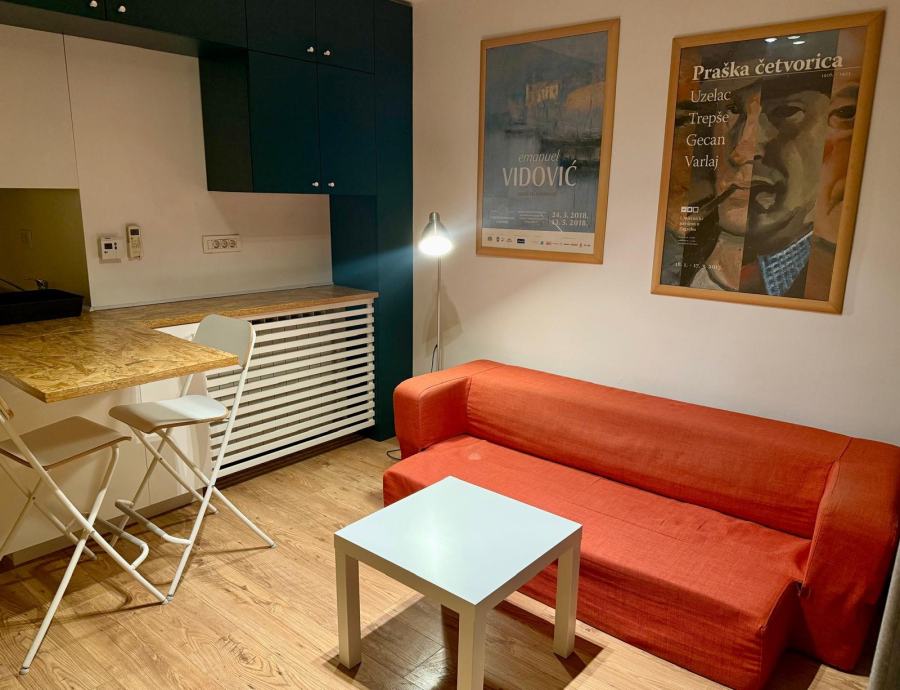 Od 1/1/2026, Design District, najam stana od 30 m2, 6. kat bez lifta, koji se sastoji od dnevne sobe s čajnom kuhinjom, kupaonice s wc-om i spavaćom sobom. Spavaća soba gleda na Petrovu crkvu a dnevna soba na Bauerovu ulicu.