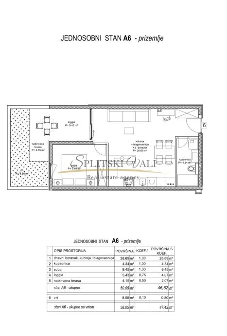 Jednosobni stan – 47,42 m² obračunske površine (sa vrtom)
