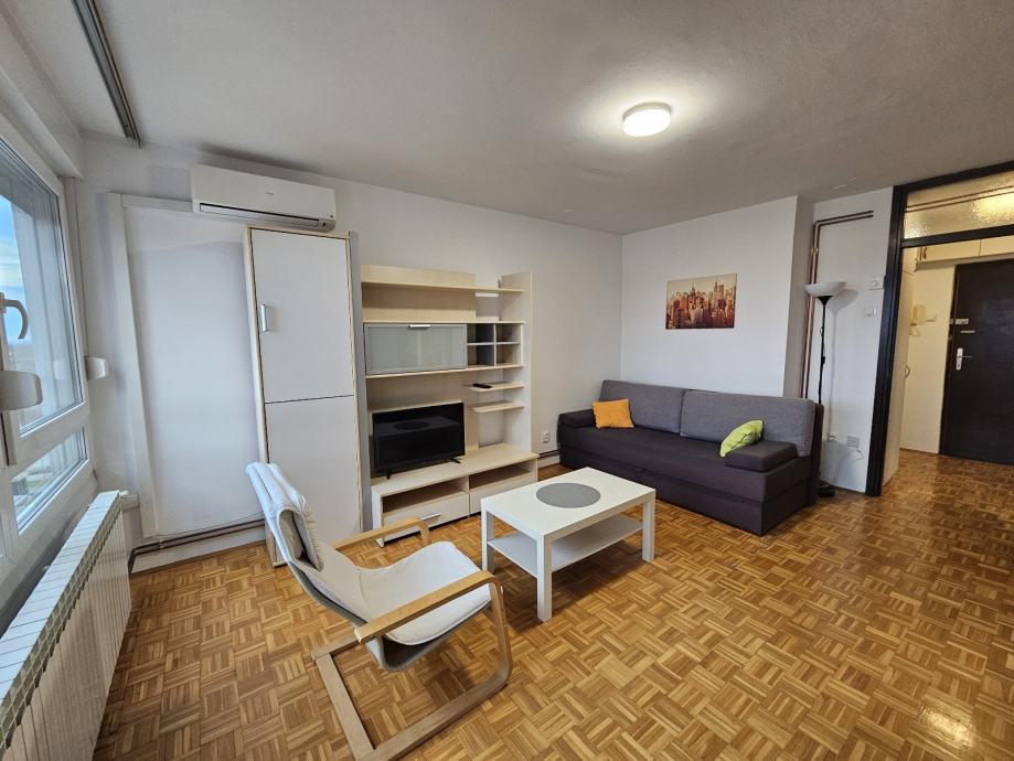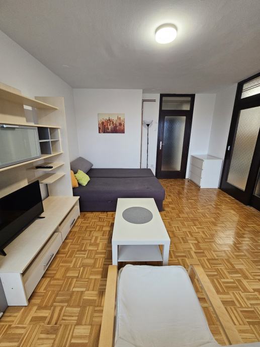 Iznajmljujem 1-sobni stan od 39 m2, koji se sastoji od predsoblja, dnevnog boravka, kuhinje s blagavaonom, smočnice, zatvorene lodje, kupaonice s WC-om. Kuhinja je potpuno nova (perilica suđa, indukcijska ploča, pećnica). U dnevnoj sobi je kauč na razvlačenje (160x200 cm razvučen). U zgradi postoji spremište za bicikle. Stan je neposrednoj blizini tramvaja. Režije po zimi su bile 70 EUR (Plin, Zgholding, HEP). Najam je 500 EUR mjesečno, uz polog 500 EUR.