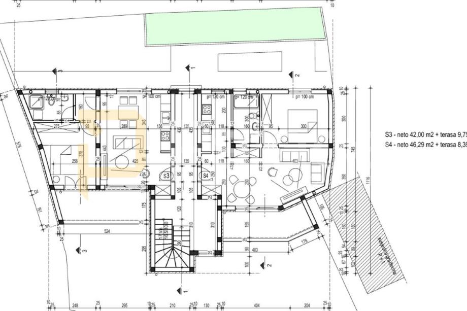 Stan se sastoji od jedne spavaće sobe, kupaonice te prostranog otvorenog prostora u kojem su kuhinja, blagovaonica i dnevni boravak povezani u jednu svijetlu i ugodnu cjelinu. Dodatnu vrijednost pruža terasa površine 9,75 m², savršena za boravak na otvorenom. Cijeli stan opremljen je podnim grijanjem, što osigurava visok nivo komfora tijekom cijele godine.