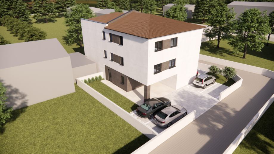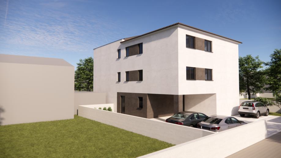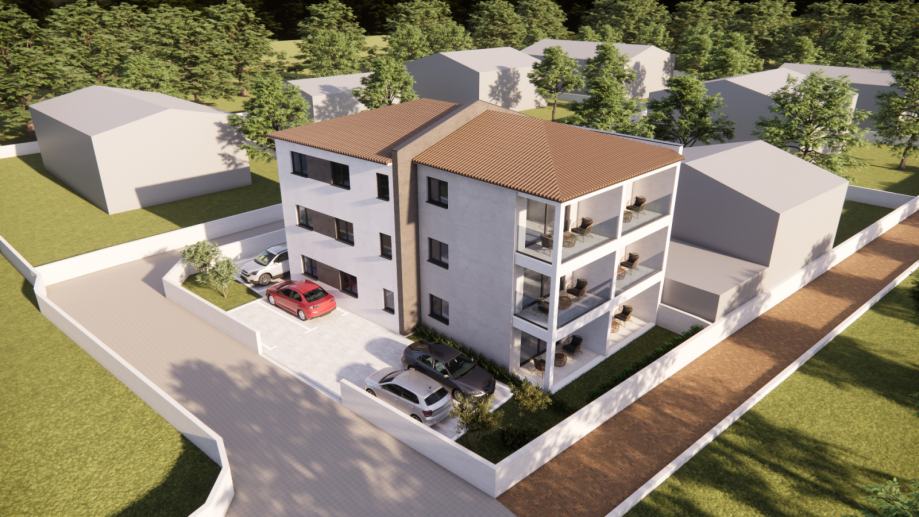 Fažana – Valbandon, dvosoban stan (A) u izgradnji, ukupne površine 56 m², smješten u prizemlju stambene zgrade sa šest stambenih jedinica.