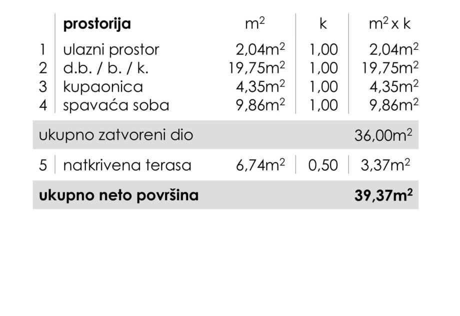 Moguća kupnja putem stambenog kredita banke po želji uz avans 10%.