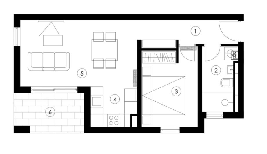 Zgrada 2, stan S2.7 nalazi se na drugom katu, a sastoji se od ulaznog dijela, spavaće sobe, kupaonice s WC-om, kuhinje s blagovaonicom i dnevnim boravkom te balkona.