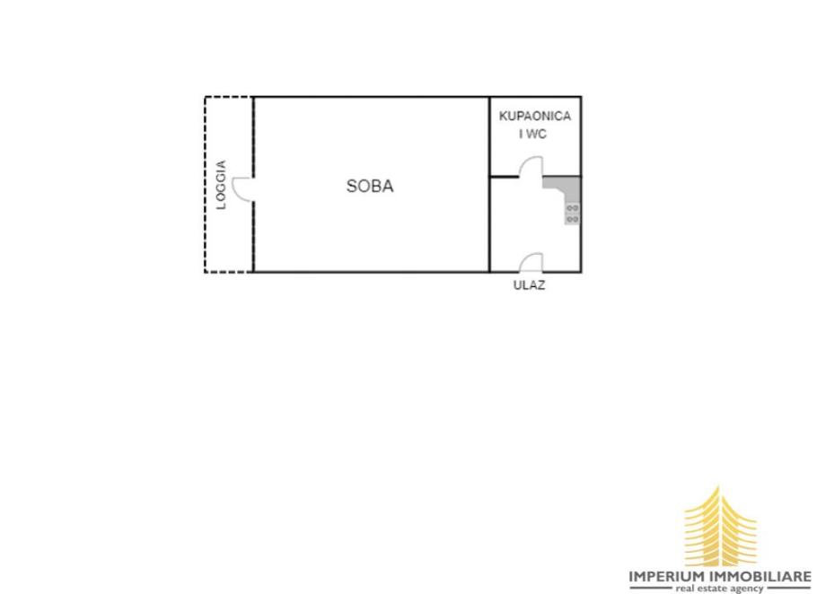 Nalazi se na 5. katu stambene zgrade bez lifta te se sastoji od ulaznog hodnika, jedne sobe, kupaonice s wc-om i loggie.