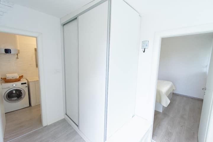 A beautiful one-bedroom apartment for rent located on the first floor of a small building in Meje. Excellent and quiet location, ideal for one to two people. It has 42m2, consists of one bedroom, kitchen with dining area and living area, hallway and bathroom. It also has its own secured parking space! Ready to move in 01.01.2026. Monthly rent price is €700. CONTACT: 0915616295 (ANDREA)