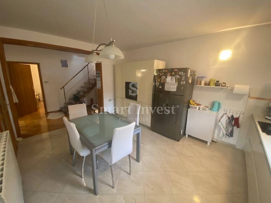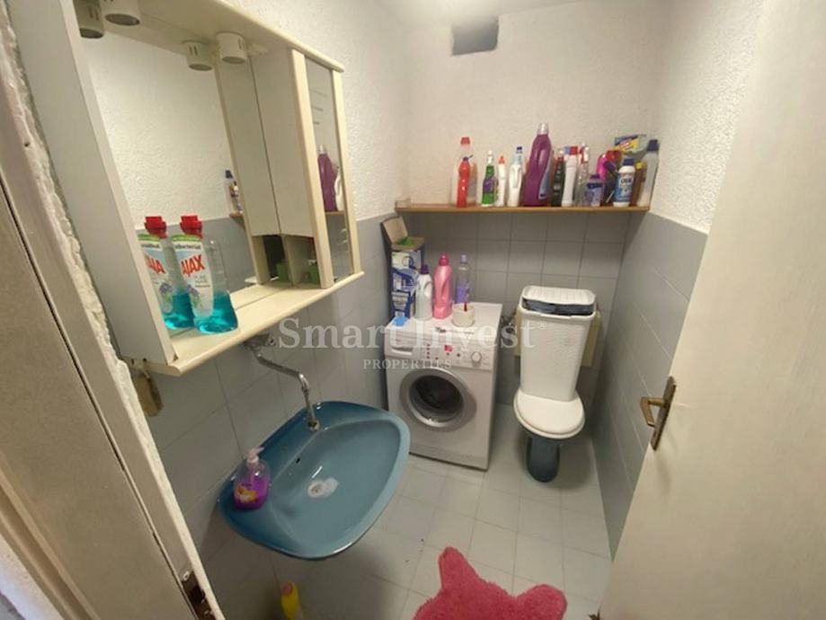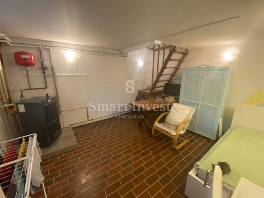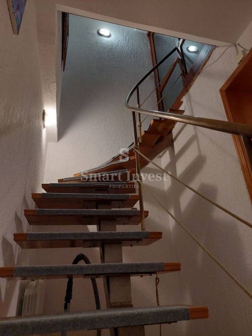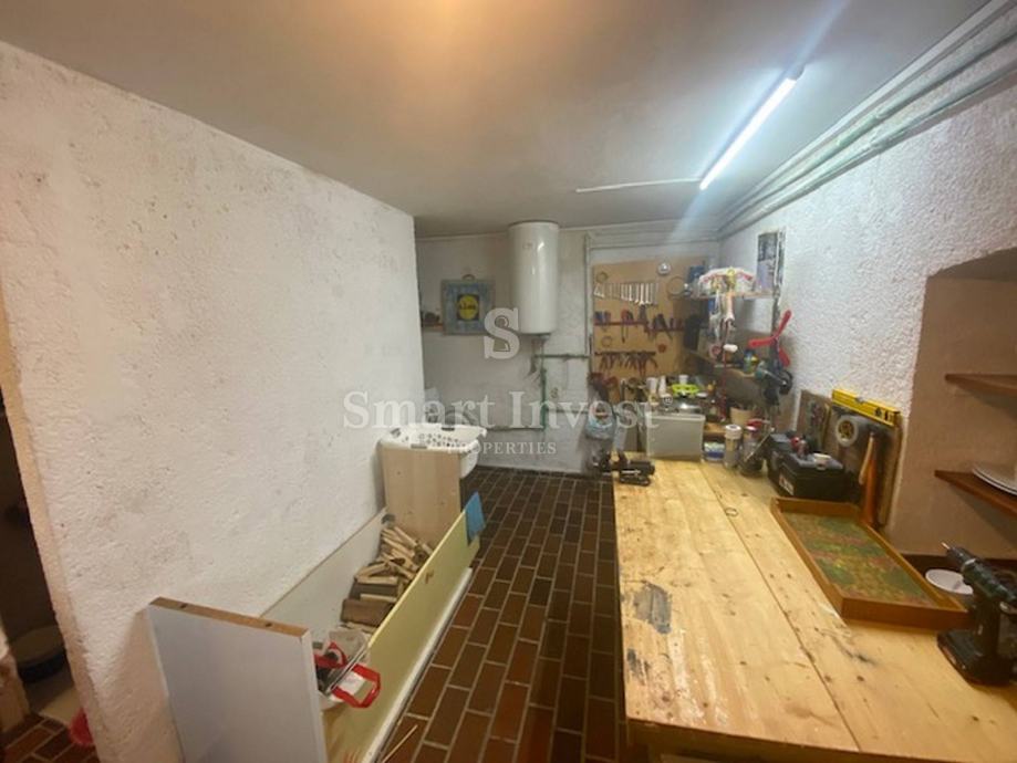 U suterenu se nalazi konoba od 40 m2 sa malim vešerajem, radionicom i garaža od 60 m2 za dva automobila, iznad koje se nalazi velika terasa sa sjenicom.