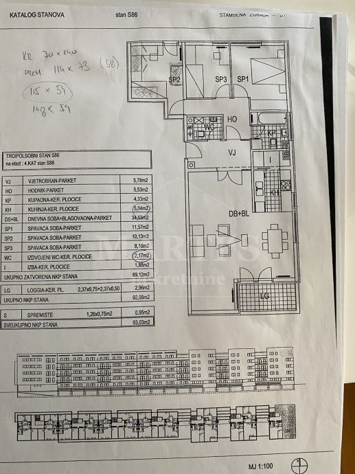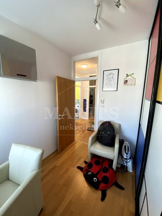 Prodaje se prostrani 4-sobni stan od 89,20 m2, s loggiom od 4,72 m2, što čini ukupnu površinu od 93,92 m2. Nalazi se na 4. ujedno i zadnjem katu zgrade s liftom. Iznad stana se nalazi sakriveni kosi krov. Zgrada je iz 2009. godine.