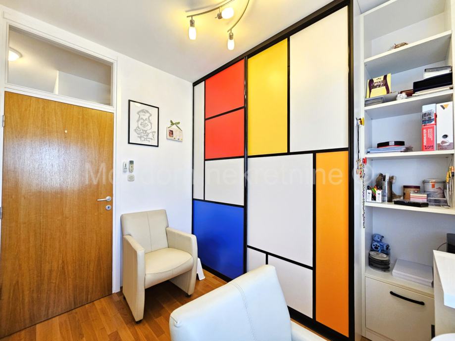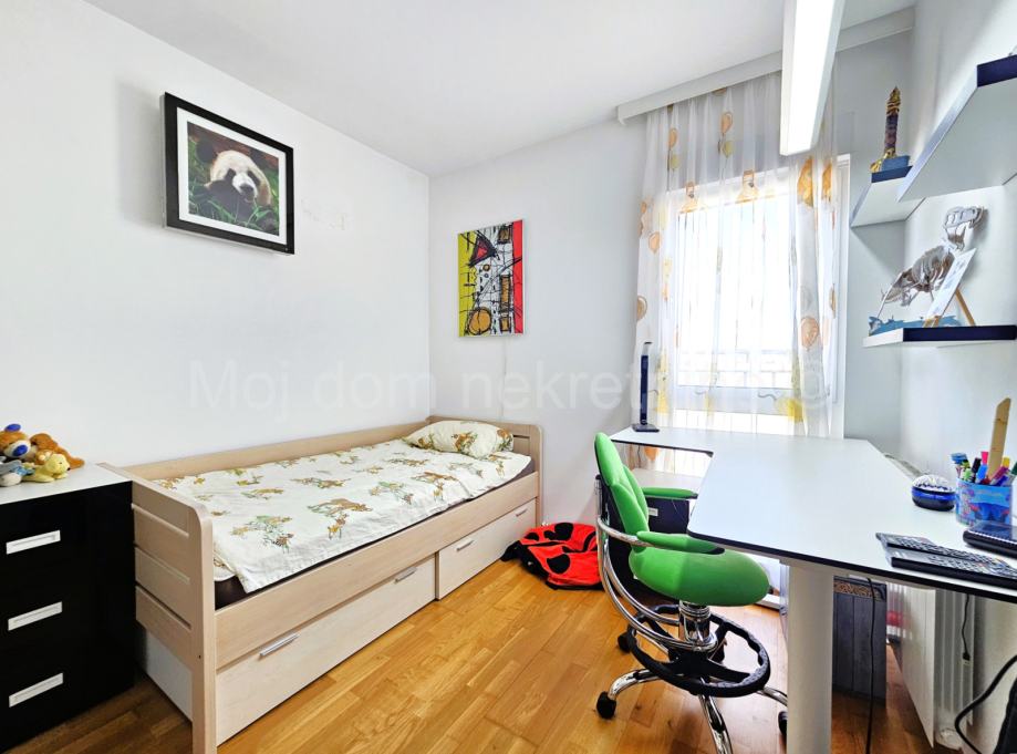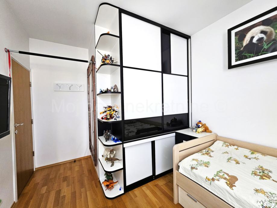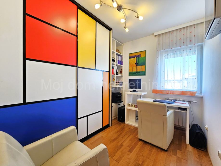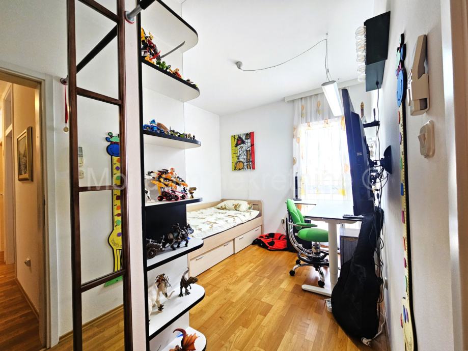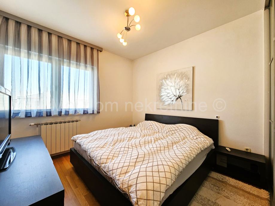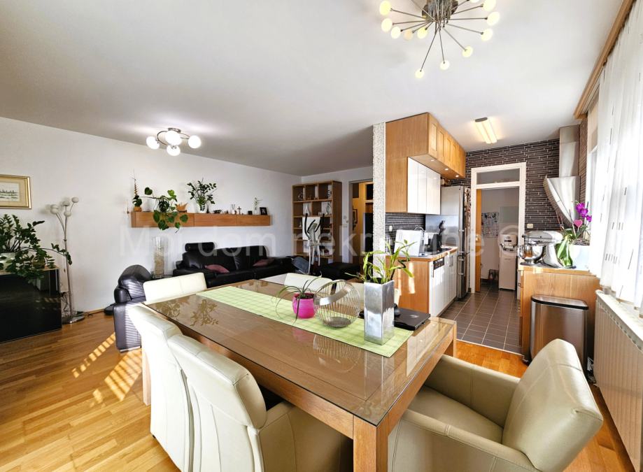 Prodaje se predivan 4 soban stan s loggiom na 4. katu zgrade s 4 kata. U cijeni je kompletan namještaj s aparatima(Mile, Libherr, Bosch, Natuzzi, Faber, Samsung, dizajnerski namještaj od prirodnih ekoloških materijala) i 2 garažna mjesta. Zbog svoje orijentacije izrazito je svijetao. Stan je opremljen ekskluzivnim Dierre protpuprovalnim vratima, te klima uređajem u svakoj sobi. Loggia zatvorena u staklu bez vidljivih okvira koje se prema potrebi može potpuno otvoriti. Stambeni prostor iznosi 89.20m2. Stan posjeduje spremište u podrumu. Smješten je u blizini škole, vrtića, autobusne stanice, te drugih bitnih sadržaja. Mogućnost kupnje garaže s dva parkirna mjesta u kojoj je moguće punjenje električnog automobila.
