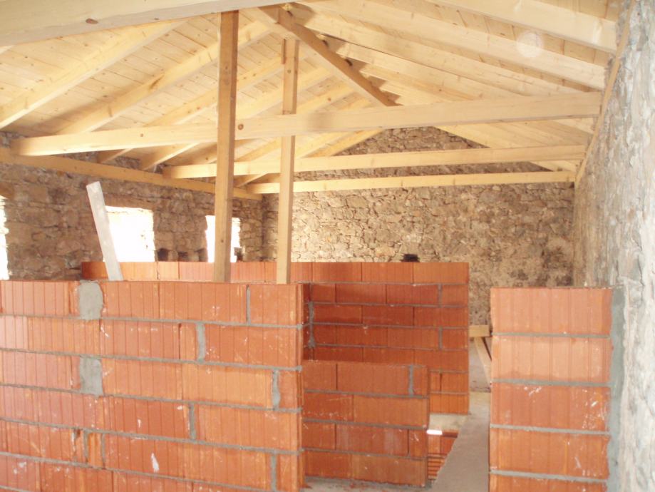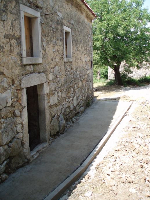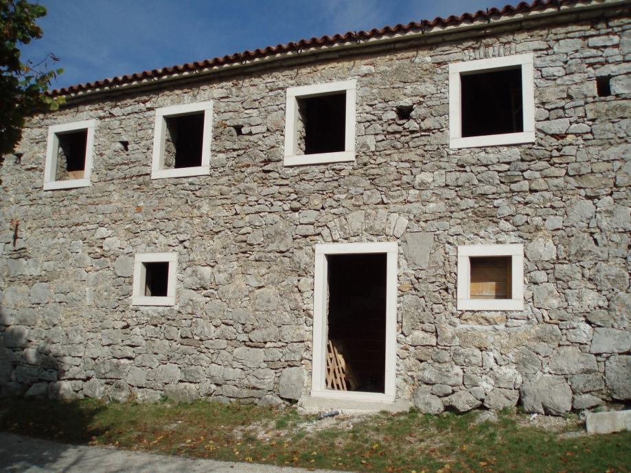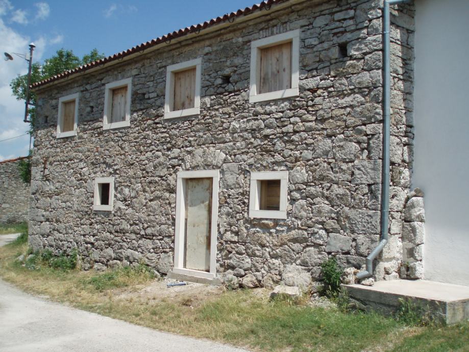 - Kuća je u fazi renoviranja – roh bau. Ima kompletno novi krov, međukatnu konstrukciju, pregradne zidove, kamene erte, septičku jamu i priključak vode. Zadržani su svi originalni elementi ukrašenih kamenih erti i drvene grede.