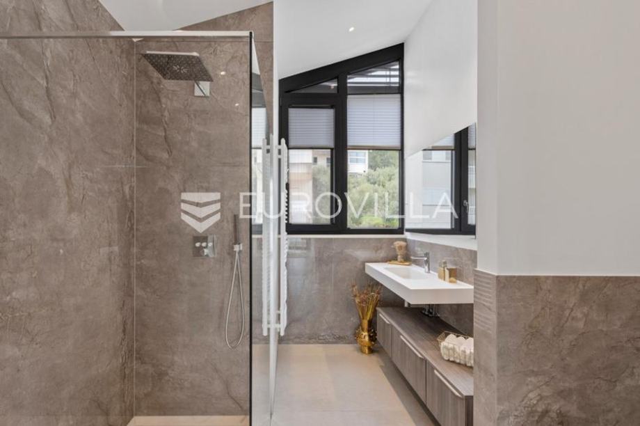 Jesenice, a modern semi-detached villa with a beautiful sea view. It extends over three floors, with a net usable area of 222 m2. It consists of an open-concept living room, kitchen and dining room, 3 bedrooms, 2 bathrooms and one toilet, as well as a beautiful terrace with a swimming pool and a...