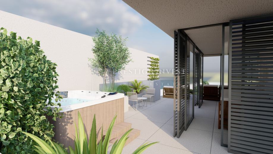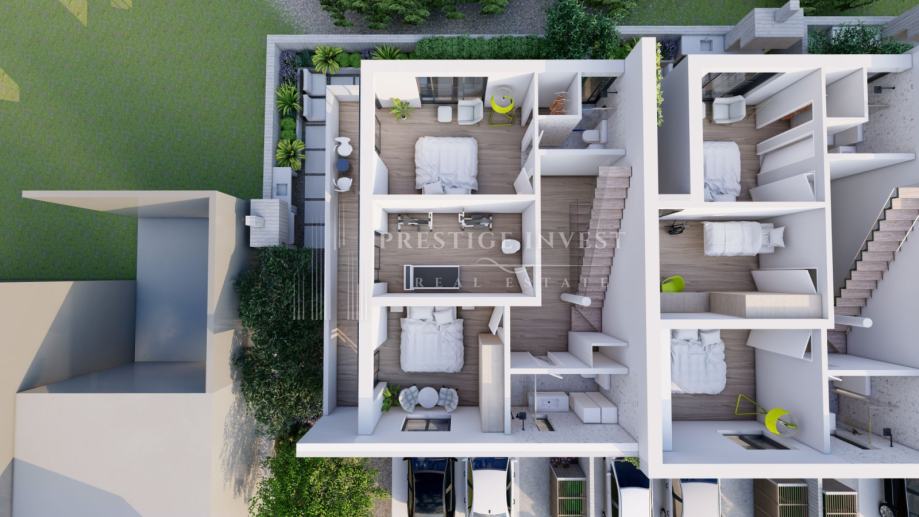 Kvalitetna gradnja renomiranog izvođača sa visokokvalitetnim materijalima, te kvalitetnom aluminijskom stolarijom. Na podovima vanjskih terasa za boravak (natkrivenih i nenatkrivenih), koriste se vanjske keramičke pločice prema izboru investitora. Podovi u unutarnjim prostorima se oblažu keramičkim pločicama odnosno parketom (spavaće sobe te hodnik i stubište na katu). Klimatizacija, u ovom slučaju hlađenje i grijanje građevine planira se ugradnjom multi split sustava klimatizacije, sa centralnom postavom vanjskih jedinica, te unutanjim jedinicama u svakoj spavaćoj sobi i dnevnom prostoru. Za potrebe grijanja sanitarnih prostora koristi se podno električno grijanje, kao i u dnevnom prostoru u prizemlju.