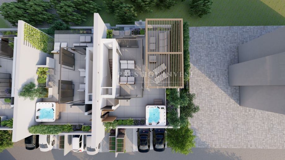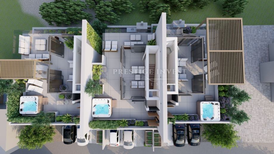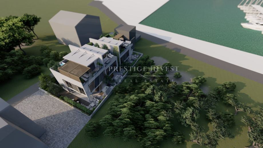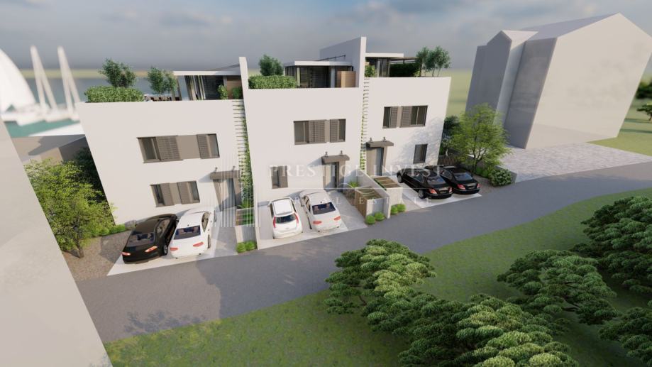 Tri prekrasne moderno dizajnirane kuće u nizu nalaze se u neposrednoj blizini ACI Marine Jezera u Murteru, predviđeni rok izgradnje i useljenja je u lipnju 2025. godine.