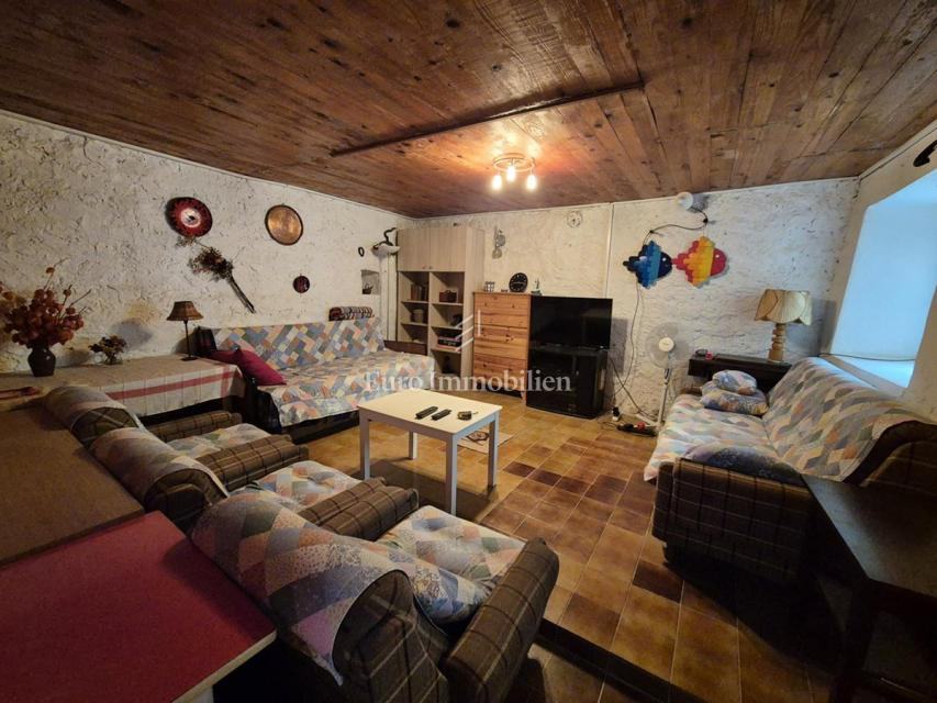 U prizemlju se nalazi dnevni boravak, blagovaonica, kuhinja, kupaonica i wc te dvorište s roštiljem.