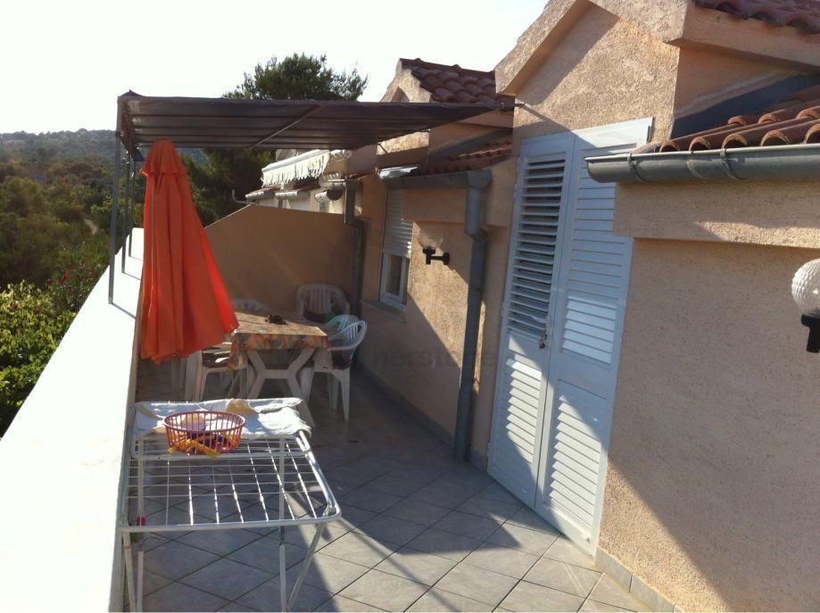 Murter, Tisno, Jezera - kuća je dvojna ukupne površine 200 m2 sa 5 odvojenih apartmana, od kojih su 3 apartmana površine 45 m2, a 2 apartmana su površine 30 m2. Svaki apartman ima svoj ulaz i svoju terasu. Prekrasno dvorište isto tolike površine sa 4 parkirna mjesta te roštiljem pruža sve za savršen odmor.