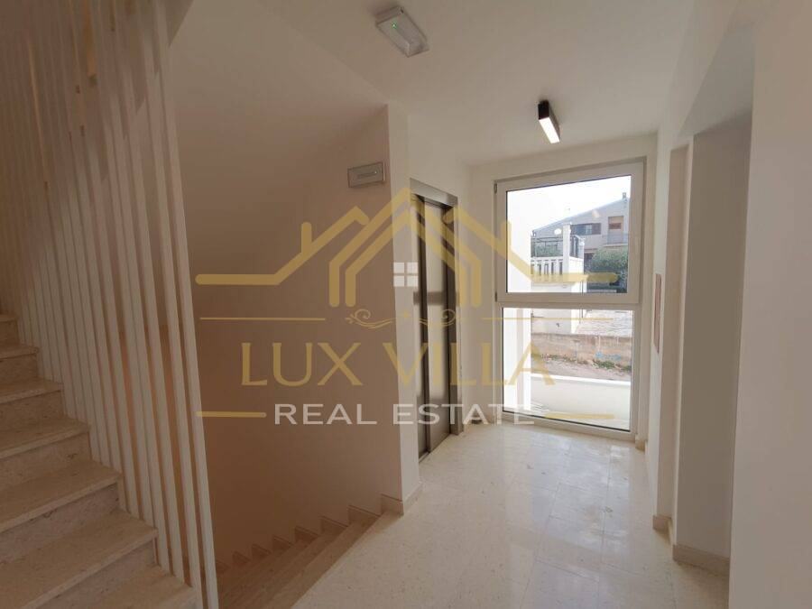 The apartment occupies the first floor of a new luxurious building with and elevator.