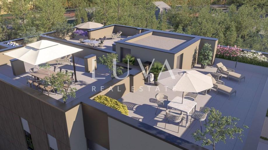 • Garaža: Podzemna garaža s 18 parkirnih mjesta različitih veličina (12,86 m² do 21,16 m²), uz obaveznu kupnju garažnog parkirnog mjesta uz stan.