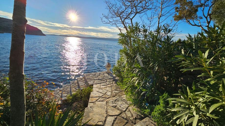 Okružena mediteranskim vrtom, kuća nudi prekrasan pogled na more i idiličnu obalu. Služi kao savršeno utočište za one koji traže opuštanje izravno uz vodu. Ispred kuće postoji i mogućnost veza za čamac.
