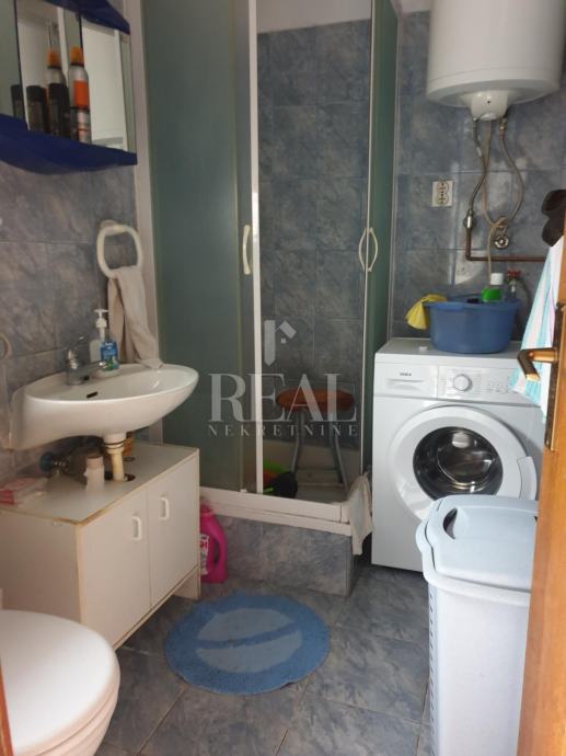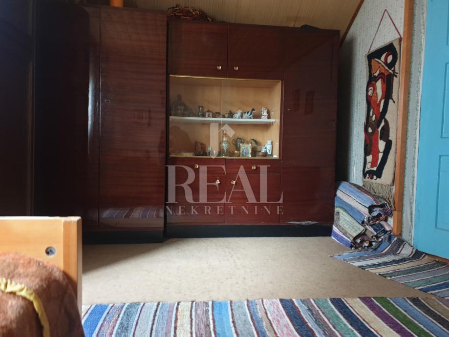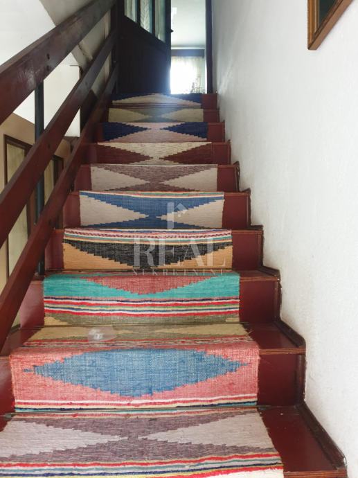 Stepenicama je povezano sa katom gdje se nalaze predsoblje i dvije spavaće sobe.