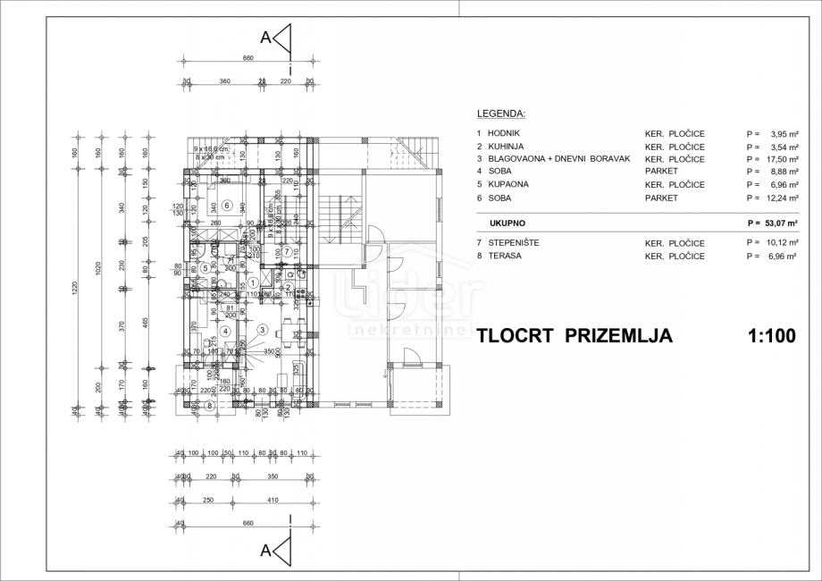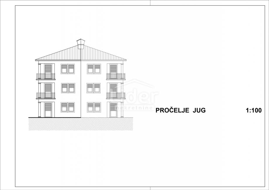 Predviđena gradanja tri stambene jedinice po 53m2 + terasa sa pripadajućim spremištima, P+2