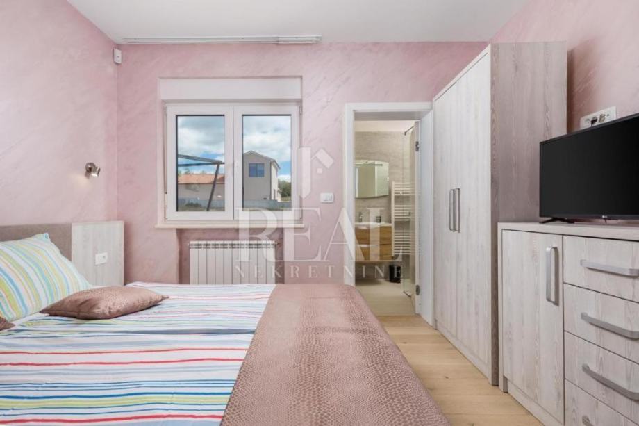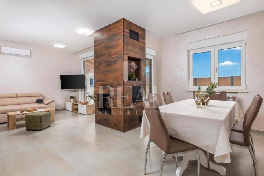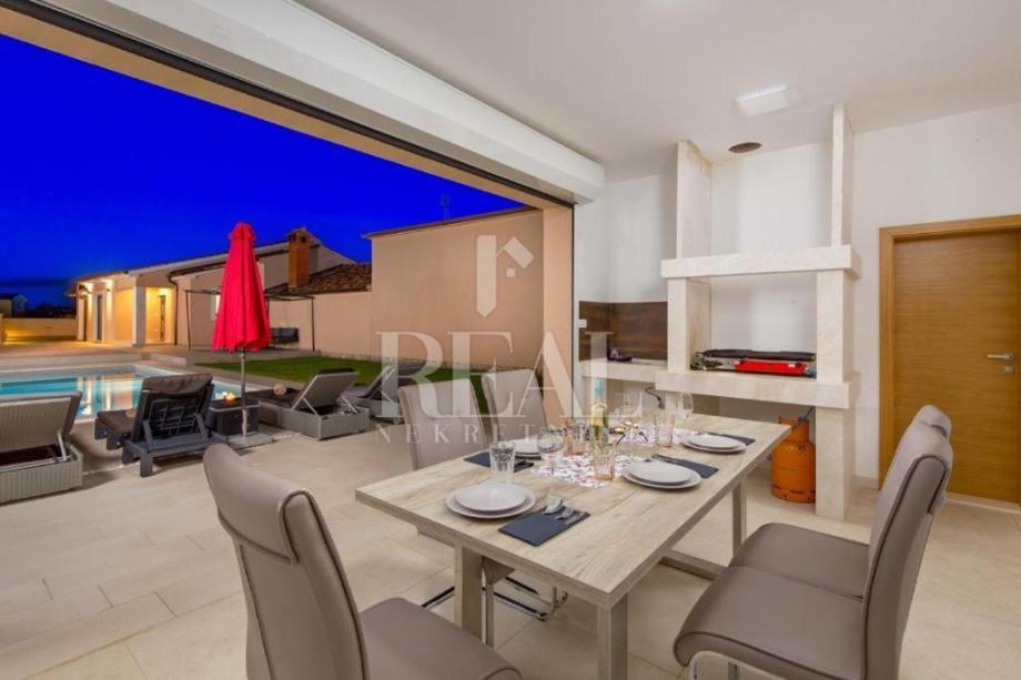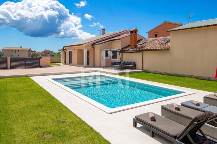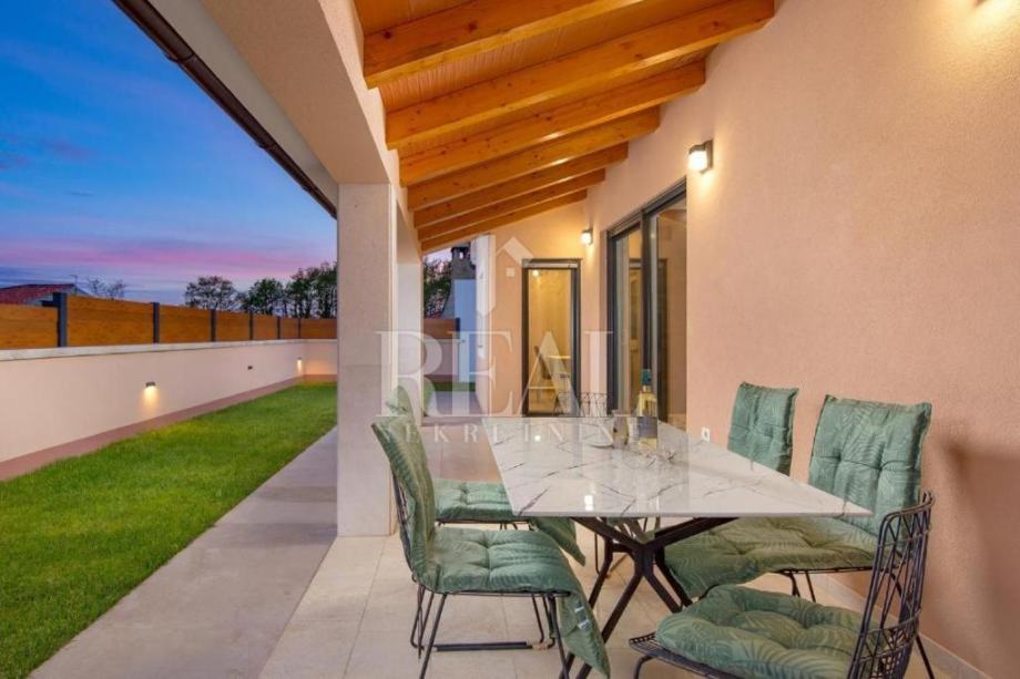Objekt od 133m2 sa vanjskim bazenom i većom natkrivenom terasom, nalazi se u okolici Juršića, 23 km od pulske Arene, 26 km od katedrale sv. Eufemije u Rovinju i 3,3 km od dvorca Morosini-Grimani.