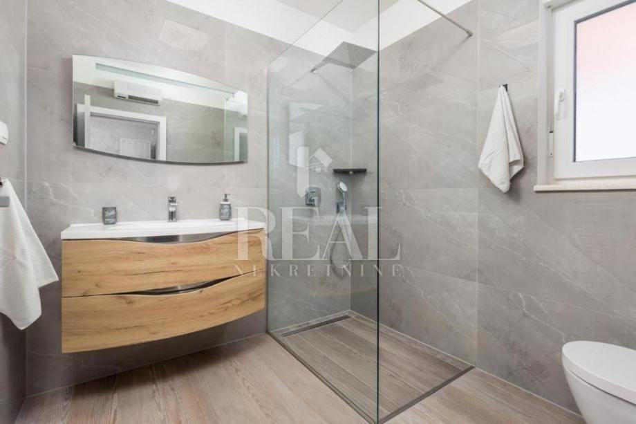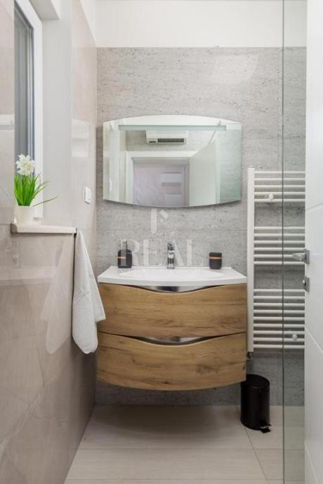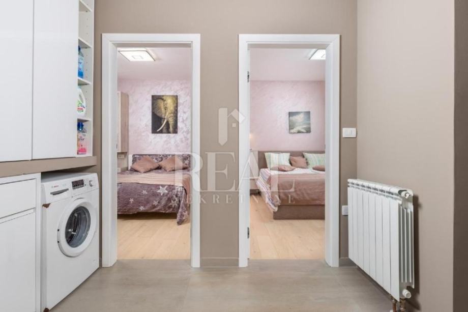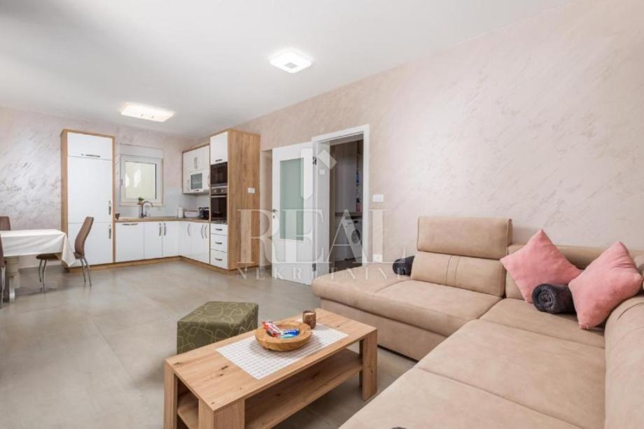 Sadrži tri spavaće sobe, dnevni boravak, potpuno opremljenu kuhinju te dvije kupaonice i odvojeni wc..