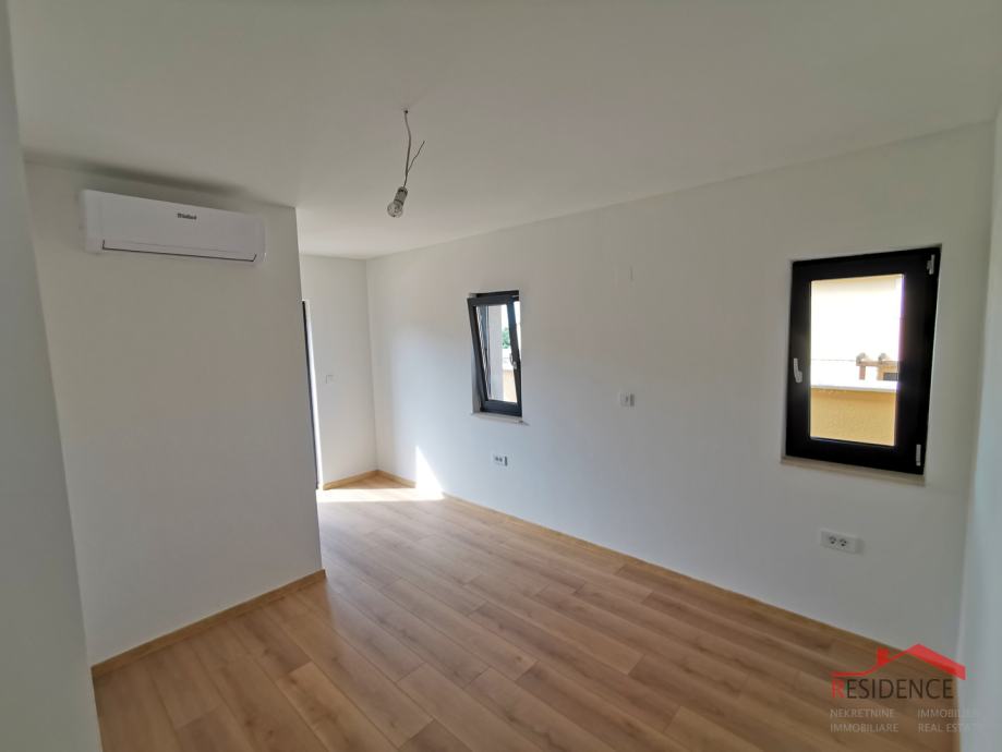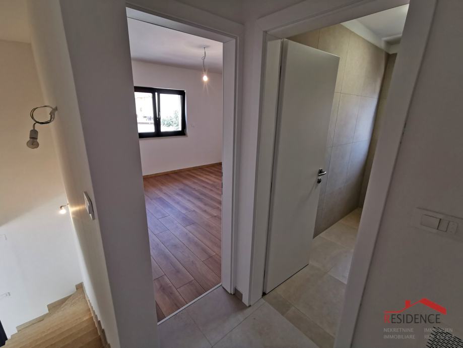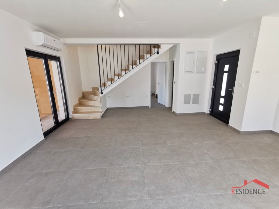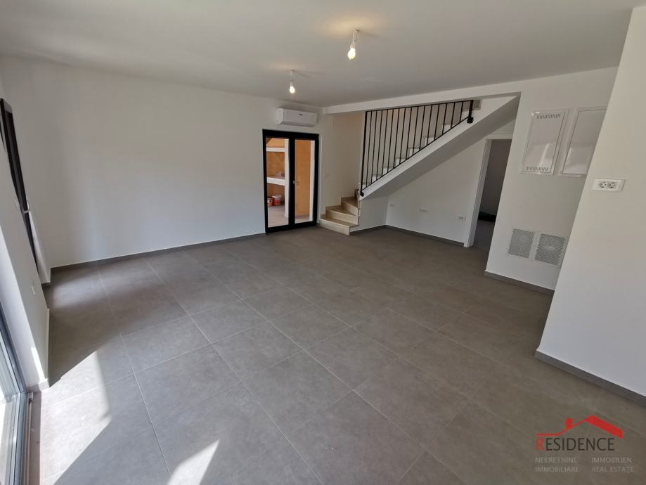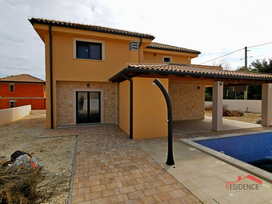 Prodajemo novu samostojeću kuću s bazenom u okolici Juršića, općina Svetvinčenat. Kuća je ukupne površine 155,39 m2, na dvije etaže. Prizemlje se sastoji od natkrivenog ulaza, kuhinje + dnevnog boravka, spavaće sobe, kupaonice, wc-a i natkrivene terase. Na 1. kat vode unutarnje stepenice, gdje se nalaze 2 spavaće sobe, dvije kupaonice, garderoba i otvorena terasa. Na okućnici od 497 m2, nalazi se bazen površine 28 m2. Ispred kuće se prostire natkriveni kutak za uživanje - prostrana terasa s kaminom. Kuća je klimatizirana i ima podno grijanje izuzev u spavaćim sobama. Parkirna mjesta. Udaljenost od trgovine, restorana i kafića je cca 800 metara. Mirna i lijepa lokacija.