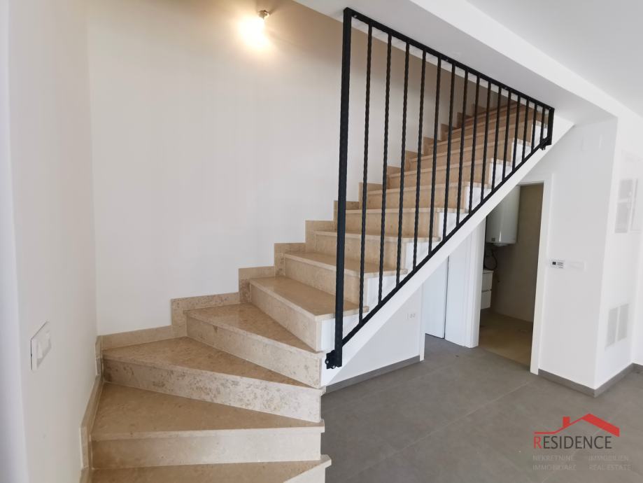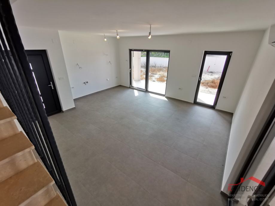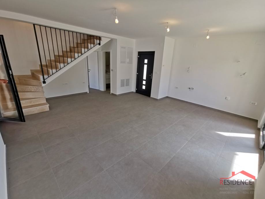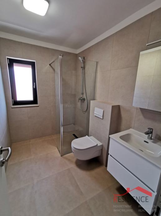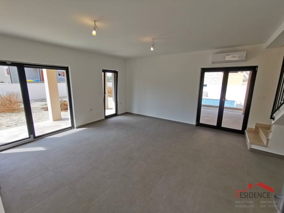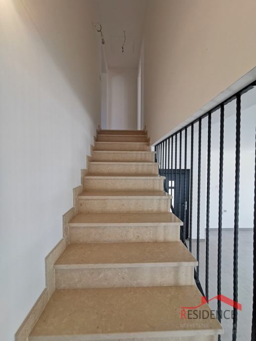 Prodajemo novu samostojeću kuću s bazenom u okolici Juršića, općina Svetvinčenat. Kuća je ukupne površine 155,39 m2, na dvije etaže. Prizemlje se sastoji od natkrivenog ulaza, kuhinje + dnevnog boravka, spavaće sobe, kupaonice, wc-a i natkrivene terase. Na 1. kat vode unutarnje stepenice, gdje se nalaze 2 spavaće sobe, dvije kupaonice, garderoba i otvorena terasa. Na okućnici od 497 m2, nalazi se bazen površine 28 m2. Ispred kuće se prostire natkriveni kutak za uživanje - prostrana terasa s kaminom. Kuća je klimatizirana i ima podno grijanje izuzev u spavaćim sobama. Parkirna mjesta. Udaljenost od trgovine, restorana i kafića je cca 800 metara. Mirna i lijepa lokacija.
