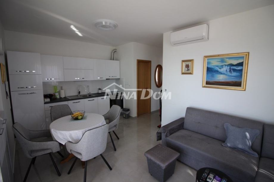 Apartman se sastoji od hodnika, kupaone, wc-a, jedne spavaće sobe, kuhinje s blagovaonicom i dnevnim boravkom, špajz, natkrivena terasa s otvorenim pogledom na more.