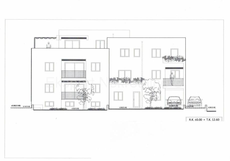 Manja stambena zgrada,idealna za obiteljski život, udaljena svega 300m od mora sastoji se od 4 dvosobna stana i 2 poslovna prostora, garsonjere.