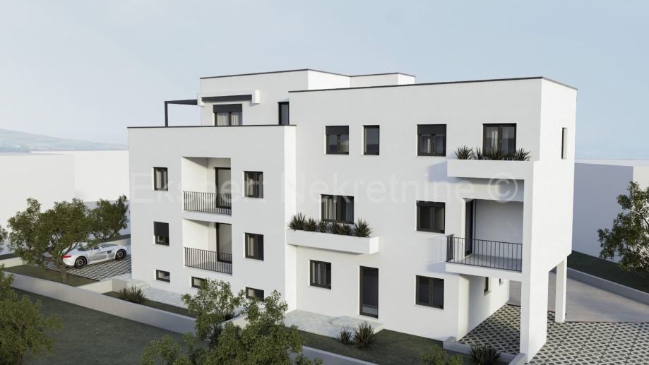 Kaštel Sućurac, dvosoban stan 65.46 m2 s ostavom 9m2 i vanjskim parking mjestim na prvom katu novogradnje.