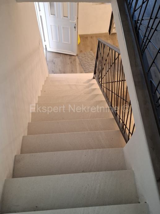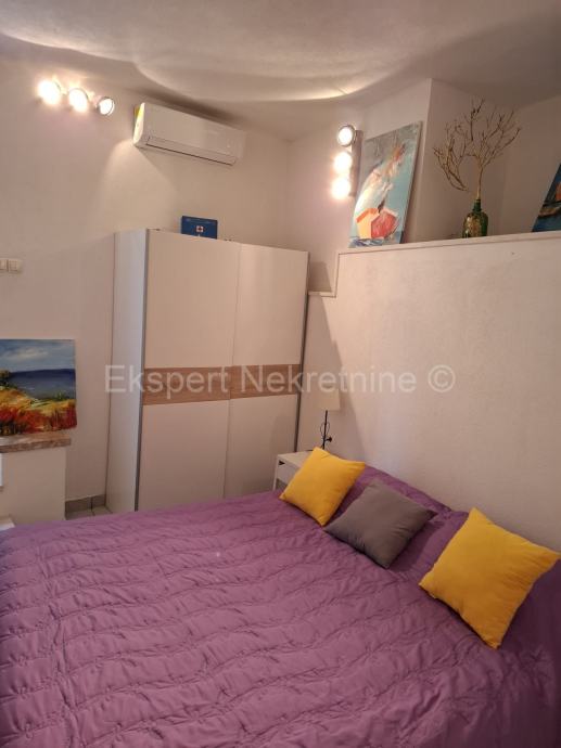 U prizemlju se nalazi studio apartman cca 39 m2, dok je na etaži prvog i drugog kata dvoetažan dvosoban stan koji ima i manji balkon s kojeg se pruža pogled na more.