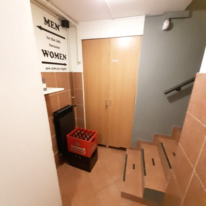 podruma s 2 WC-a za goste, 1 WC-om za osoblje i spremištem.