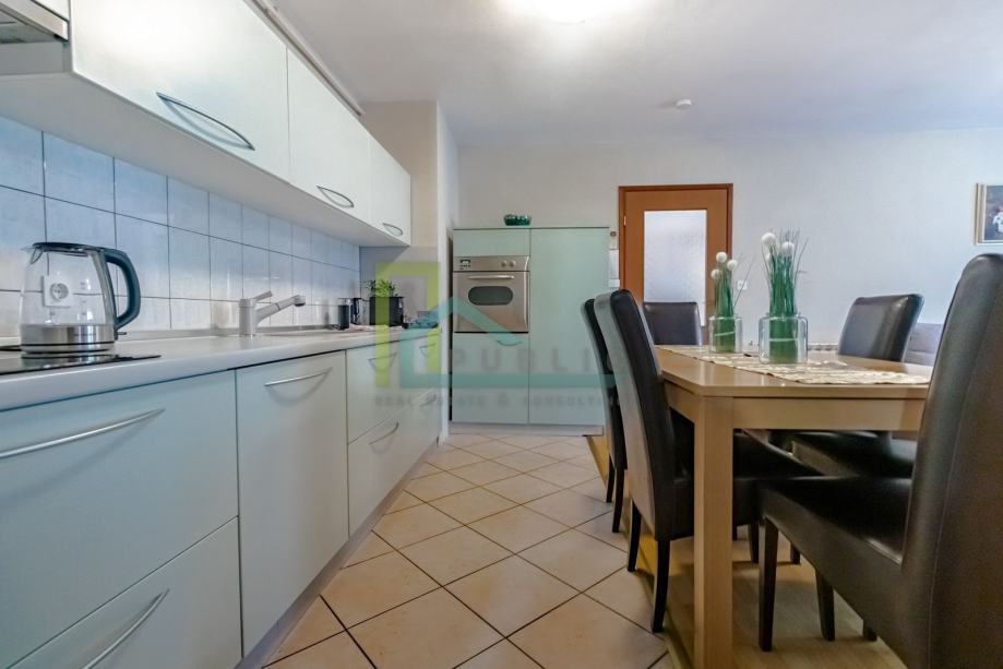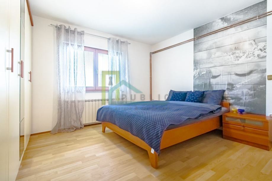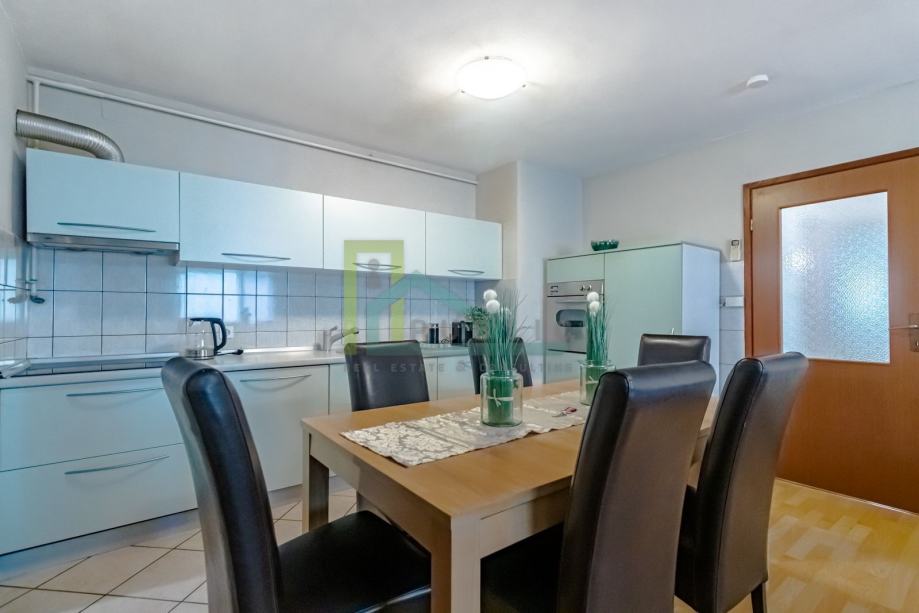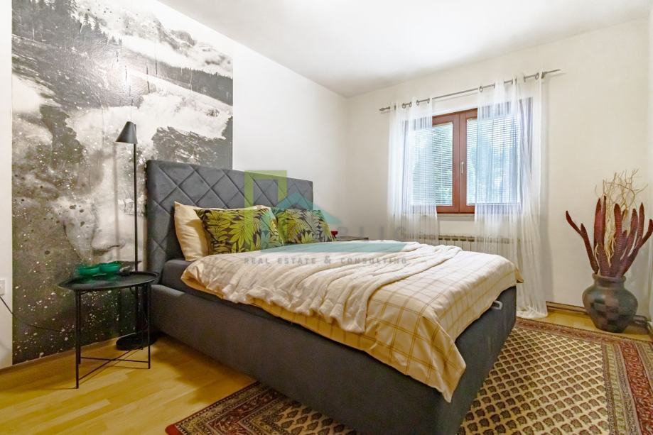 Watch the video of the apartment under the section VIDEO or on the YouTube link: https://youtu.be/DJ8WviJQKdE A beautiful 3 bedroom apartment for rent in Kajzerica on the ground floor of a house with 2 apartments. The apartment is located in an excellent and quiet location, in the immediate vicinity of all facilities necessary for a comfortable life. The apartment is fully furnished and equipped and air-conditioned. The price includes rent (electricity, water, holding, internet). Gas is paid per consumption. The apartment consists of: - entrance hall, - living room with kitchen and dining room, - 3 bedrooms, - bathrooms with toilets, - pantries, - 2 outdoor parking spaces, - a large fenced yard of about 200 m2. The apartment is rented for a minimum of 12 months and a deposit in the amount of 2 months' rent is paid. Agency commission in the amount of one month's rent!