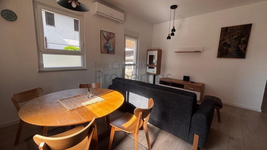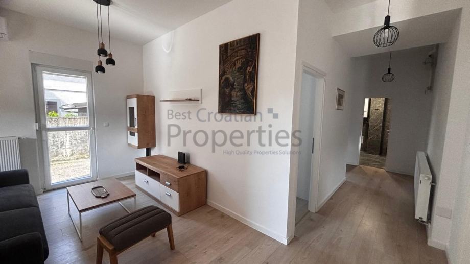 Ovaj trosoban, novouređeni stan, sastoji se od ulaznog hodnika, velikog dnevnog boravka sa kuhinjom i blagavaonom, dvije spavaće sobe, kupaone s WC-om i odvojenog toaleta.