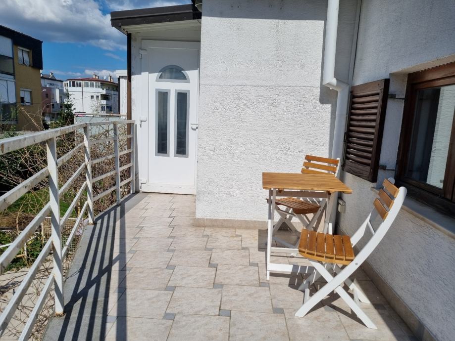 Lijep i funkcionalan manji trosobni stan (55m2) u obiteljskoj kući nalazi se u stambenom potkrovlju u Novom Zagrebu, naselje Kajzerica. Stan sobama gleda na jug, a dnevnim boravkom na zapad i dovoljno je odmaknut od susjednih parcela i većih zgrada i od pogleda dodatno djelomično zaštićen krošnjama drveća. Svojim dvorišnim položajem odmaknut je i od neposrednog prometa po ulici.
