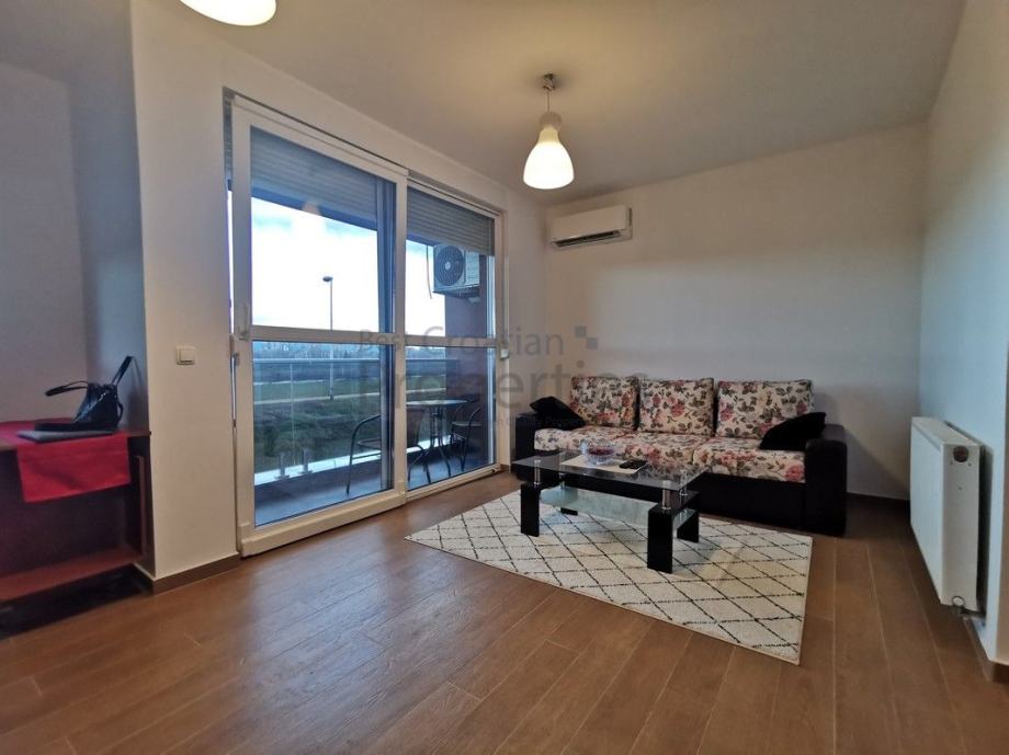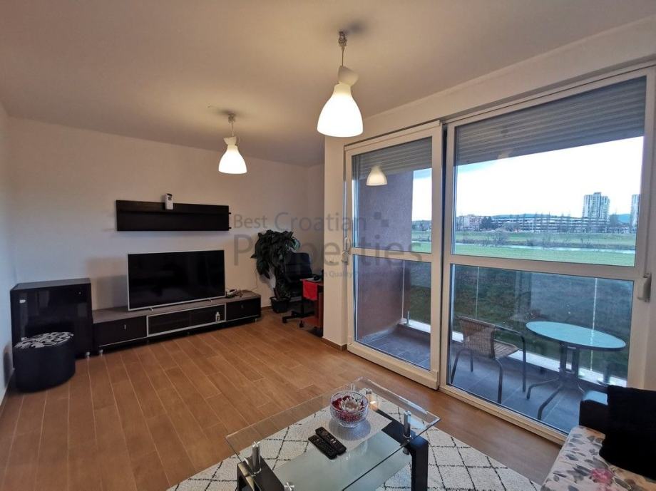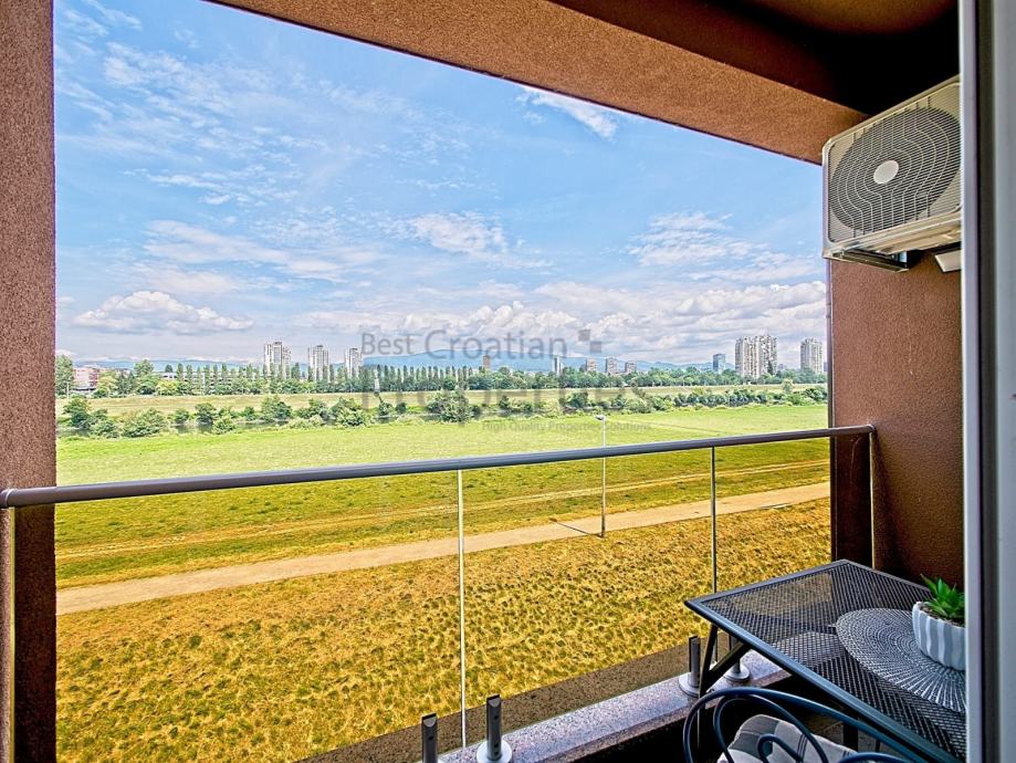 Stan se sastoji od hodnika, spavaće sobe, kupaone, kuhinje, blagavone i komfornog dnevnog boravka s izlazom na lođu, s predivnim pogledom na Savski nasip.
