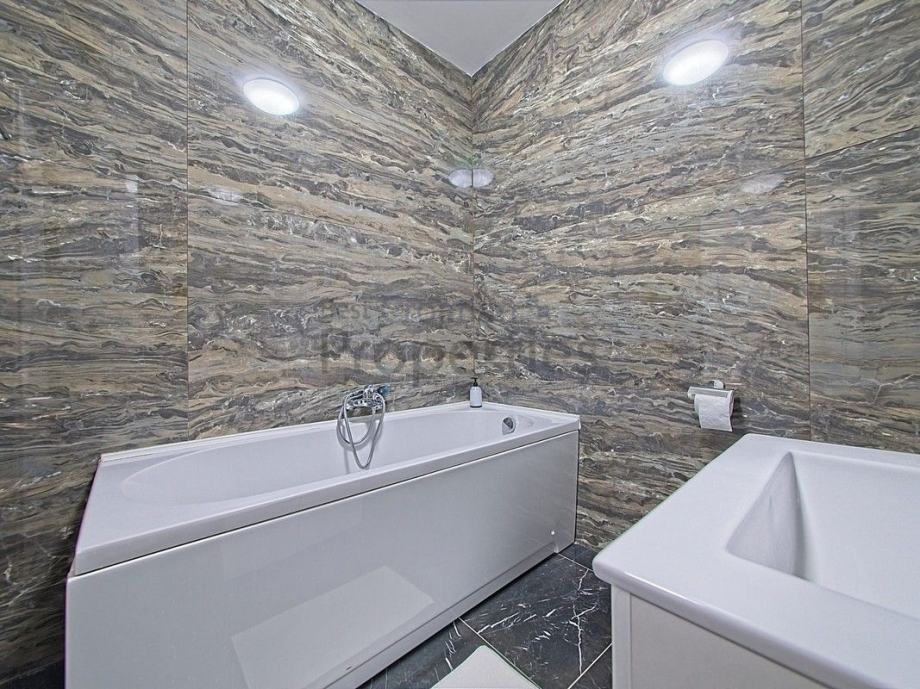 Osim toga, stan ima tri spavaće sobe te dvije kupaone sa tušem i kadom, sa vrhunskom sanitarijom te izrađene u mramoru.