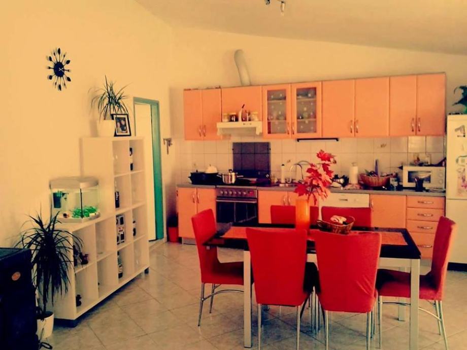 . na katu je stan s 4 sobe, dnevni boravak, kuhinja s blagavaonicom, hodnik, kupatilo