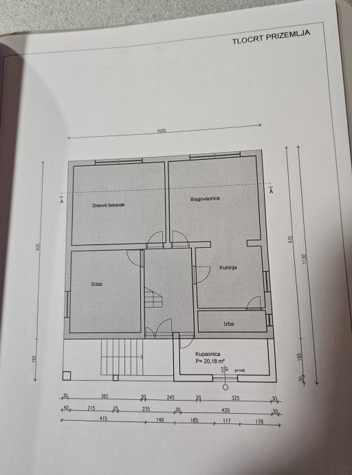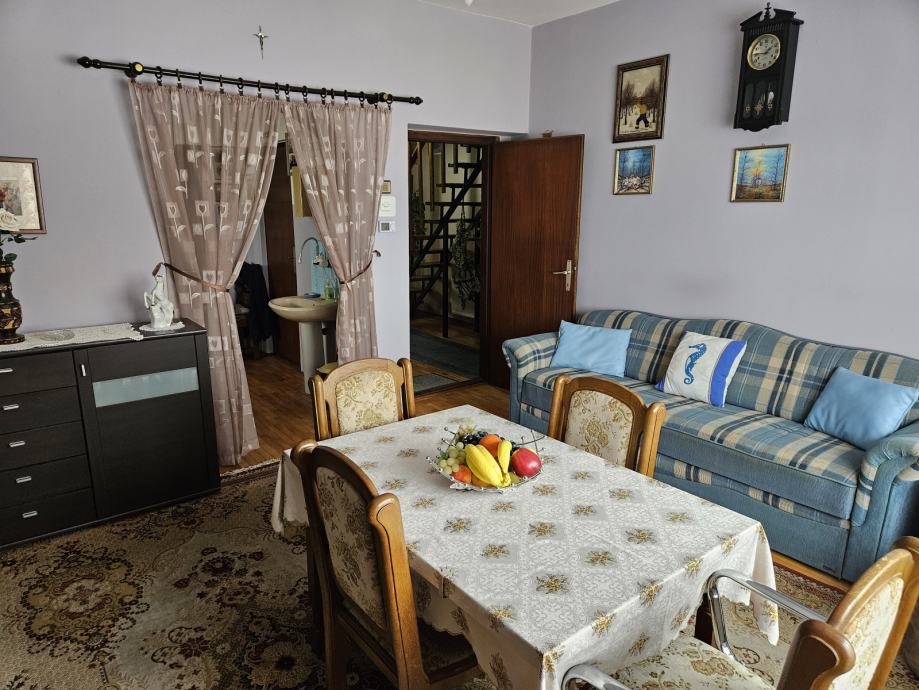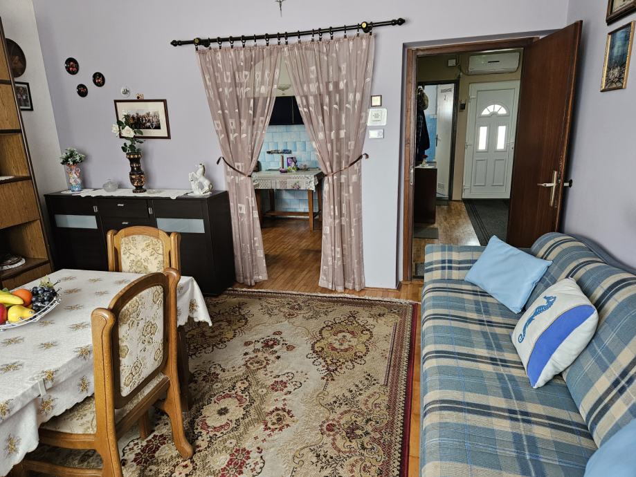 U prizemlju se nalazi hodnik, kupaonica, dnevni boravak s kuhinjom, dvije sobe i ostava. Centralno grijanje na plin.