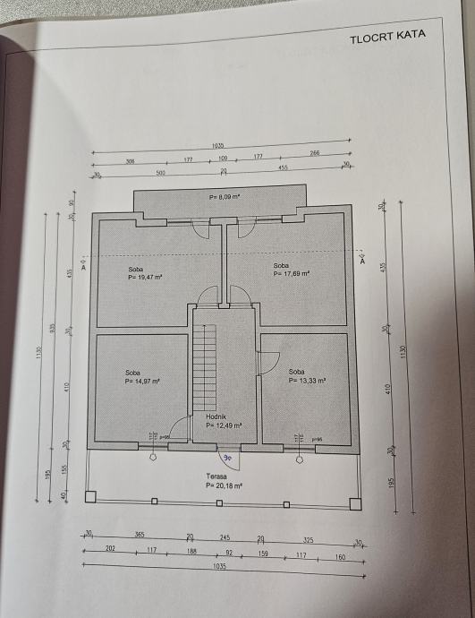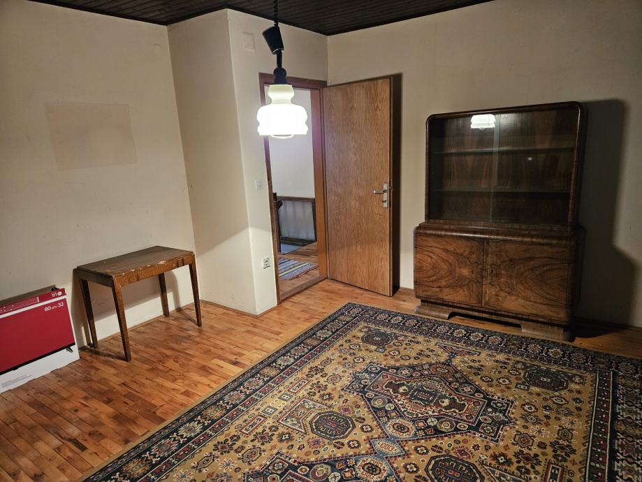 Na katu su hodnik, dvije spavaće sobe s balkonom te dvije sobe u rohbau stanju s terasom koja gleda na dvorište + ulaz na tavan.
